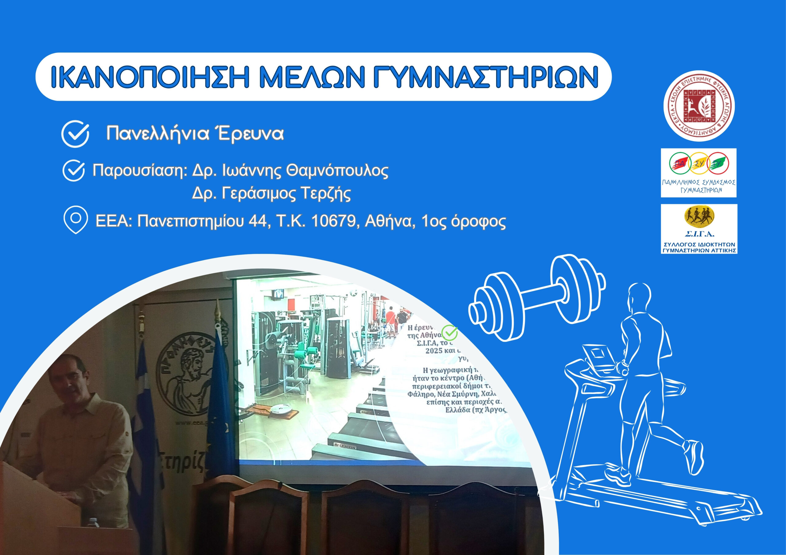 Η εκδήλωση πραγματοποιήθηκε στις 22/4/2026 στην αίθουσα του Επαγγελματικού Επιμελητηρίου Αθηνών (ΕΕΑ). Διεξήχθη από το ΣΕΦΑΑ Αθηνών σε συνεργασία με τον Πανελλήνιο Σύνδεσμο Γυμναστηρίων (ΠΑΣΥΓΥ) και τον Σύλλογο Ιδιοκτητών Γυμναστηρίων Αττικής (ΣΙΓΑ) σε όλη την Ελληνική Επικράτεια και με δείγμα τριών χιλιάδων ατόμων. Παρουσιάστηκε από τον Δρ Ιωάννη Θαμνόπουλο , μέλος ΕΕΠ της Eιδίκευσης Αθλητικής Διοίκησης του ΤΕΦΑΑ και τον κοσμήτορα του ΤΕΦΑΑ . Πρόκειται για την πρώτη έρευνα του είδους μετά την πανδημία του COVID 19 και την πρώτη σε πανελλήνια κλίμακα, η οποία αποτύπωσε τις τάσεις που επικρατούν στον χώρο του fitness σήμερα, μέσα από την οπτική των ενεργών μελών των γυμναστηρίων.